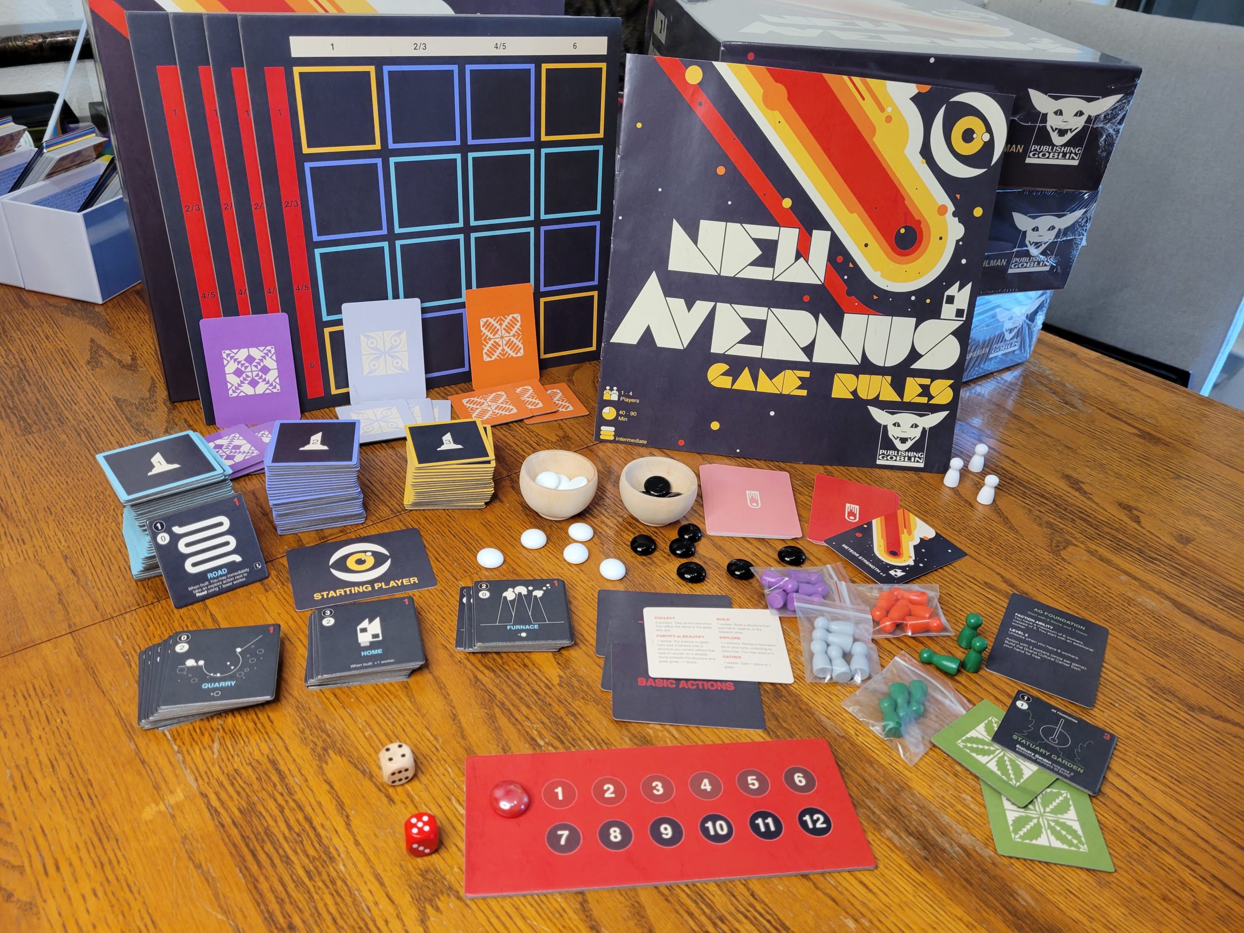 New Avernus is the first board game from Publishing Goblin Games. In this apocalyptic city building board game, 1-4 players will race to explore ruins, gather resources, and construct a city before the encroaching meteor strikes! After the dust settles, you count up what’s left and determine who won!